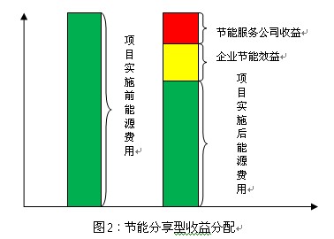 合同能源管理模式包括節能效益分享型、節能量保證型、能源費用托管型、融資租賃型、混合型等類型的合同。其中節能效益分項型是推薦合作模式,以充分調動業主的節能積極性。所謂“節能效益分享型”,是指節能工程的前期投入由節能服務公司擔負,客戶無需投入資金。在項目完成后,客戶在一定的合同期內,按比例與公司分享由節能項目產生的節能效益。