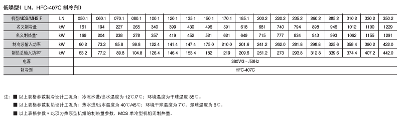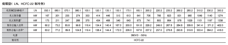 ̖MCS050.1 F~MCS380.2 F MHS050.1 F~MHS380.2 F 170~1370kW Ɵ179~1439kW 䄩HCFC-22 HFC-407C