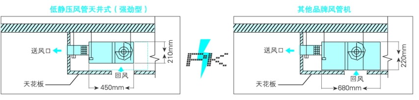 美的低靜壓風管機機身厚度最薄處僅為210mm,深度最小僅為450mm,均小于行業水平,可為你騰出更多商住空間。