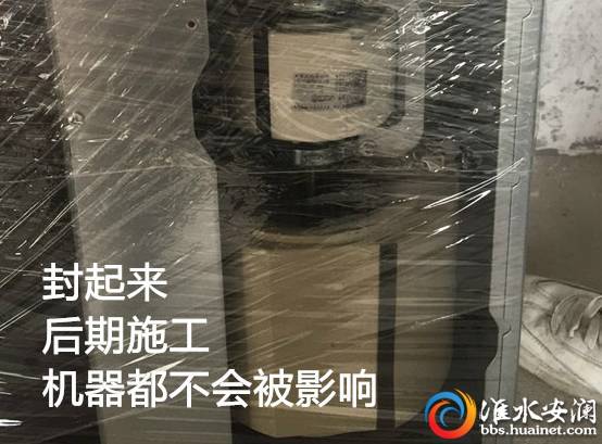 (2)做防塵處理:用膠帶把整個(gè)機(jī)器都包裹起來(lái),因?yàn)橹醒肟照{(diào)是在裝修前期的安裝,包裹好后面施工產(chǎn)生的揚(yáng)塵不會(huì)進(jìn)入到機(jī)器里,影響使用。