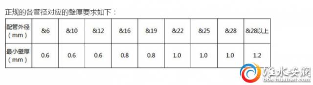 正規(guī)的各管徑對(duì)應(yīng)的壁厚要求如下: