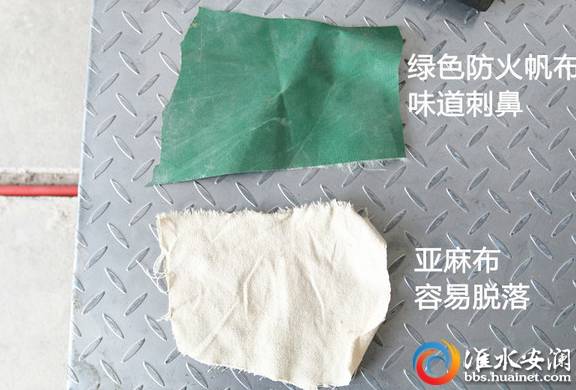綠色帆布:防火材料,味道比較重,開(kāi)1-2年味道也散不掉,稍靠近些感覺(jué)明顯很刺鼻。