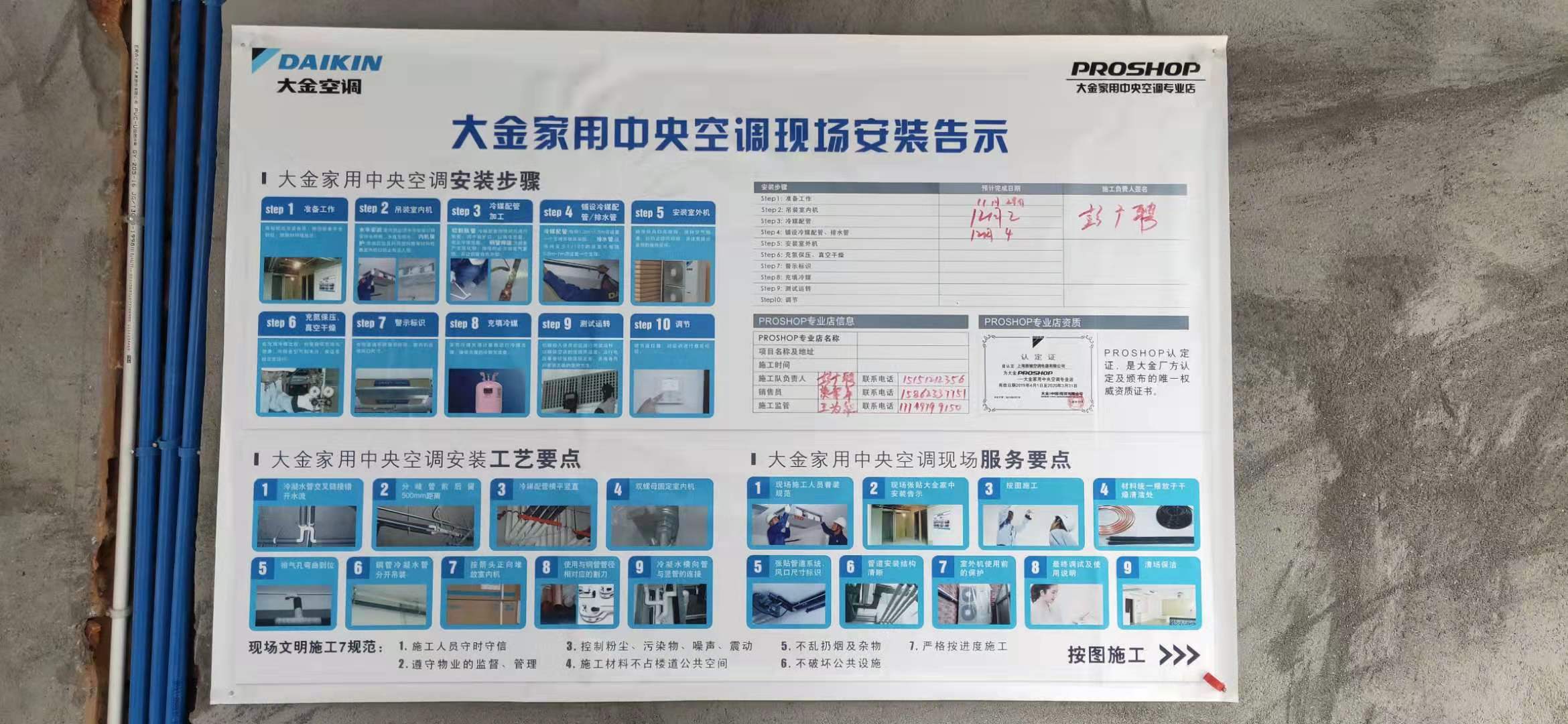 (3)貼上標(biāo)識(shí)貼:留有公司客服人員電話(huà),萬(wàn)一裝修公司工人在施工中有問(wèn)題,需要聯(lián)系中央空調(diào)施工,可以直接方便聯(lián)系。