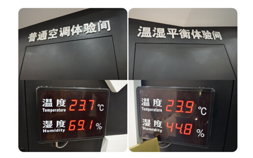 普通空調(diào)體驗間的溫度與大金溫濕平衡體驗間的溫度幾乎一致,但是濕度的差異卻相當(dāng)大,在普通空調(diào)體驗間由于過高的濕度讓人感覺十分不適,有種悶熱的感覺;而在大金溫濕平衡體驗間,這樣的溫度和濕度下卻感覺很涼爽甚至有些冷。