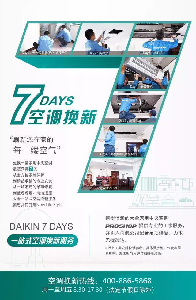 家用中央空調想改造?今后您不必再為此擔心,放心交給大金PROSHOP家用中央空調專業店,7日無憂改造,從保護到拆機,從安裝到修復,專業的團隊帶您開啟專屬您和家人的NEW LIFE STYLE。